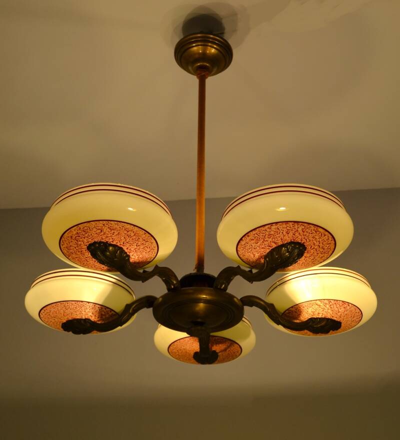 H 8 / 5-armige Art-Deco - Art-Nouveau schaallamp 1930 - 70 cm hoog : 67 cm diameter
