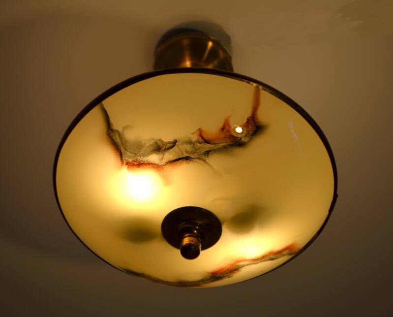 H 7 / 5-armige Vintage Art-Deco schaallamp met marmerglas 1950 - 100 cm hoog : 65 cm diameter