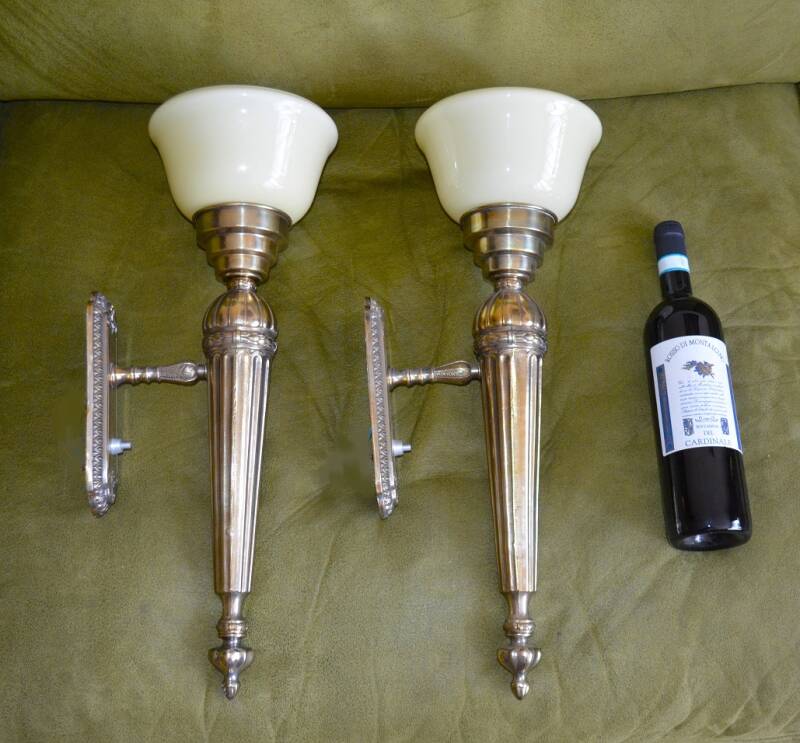 W 11 / Set XXL Vintage Art-Deco - Empire wandlampen - 1970 / 54 cm hoog : 20 cm breed